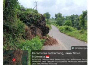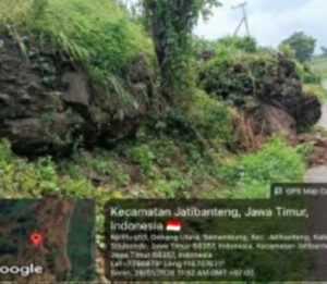 Tepatnya di Dusun Gebang – Semambung – Jatibanteng – Situbondo, sebuah bongkahan batu berukuran masif bergeser ke bawah akibat longsor, dan kini menggantung tepat di atas badan jalan.