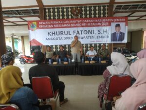JEMBER, (deteksimedia.id)— Anggota DPRD Kabupaten Jember, Khurul Fatoni, S.H., dari Fraksi NasDem Komisi B Dapil 6, menggelar kegiatan Reses Masa Sidang Ke-3 Tahun 2025 bertempat di Kantor Desa Gerden, Kecamatan Puger, Kabupaten Jember, Jawa Timur. Jumat (5/12/2025).