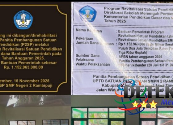 Rahmadi – Deteksi Media Jember (deteksimedia.id.) – Jumat 12/12/2025.Pemerintah terus menunjukkan komitmennya dalam memperbaiki kualitas sarana dan prasarana pendidikan…