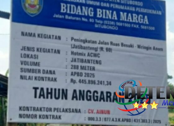 Bay-Deteksi Situbondo, (deteksimedia.id), edisi Jum’at, 12/12/2025Pelaksanaan Kegiatan Peningkatan jalan ruas Besuki – Wringin Anom (Jatibanteng) R. 60, di Jatibanteng…